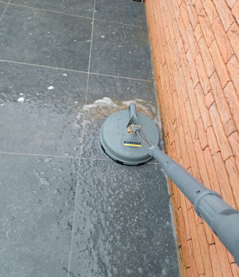 Grondige reiniging verwijdert aanslag en maakt uw terras weer als nieuw.