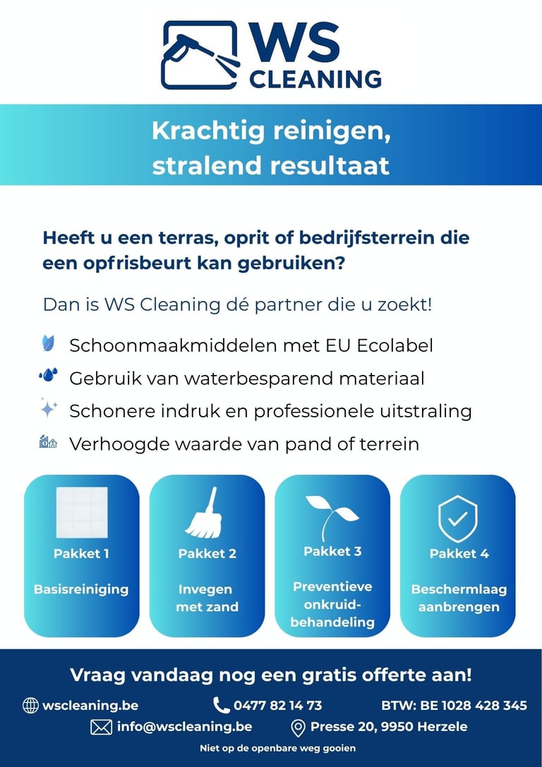 WS CLEANINGinfo@wscleaning.be+32 477 82 14 73BTW. BE 1028 428 345Algemene voorwaarden